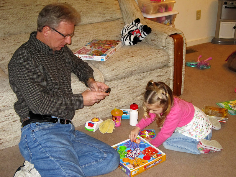 We were also lucky this month to have Papa Gary come visit us for a day! The girls had a lot of fun playing games and reading books with him. He even showed Camri how to do a puzzle.